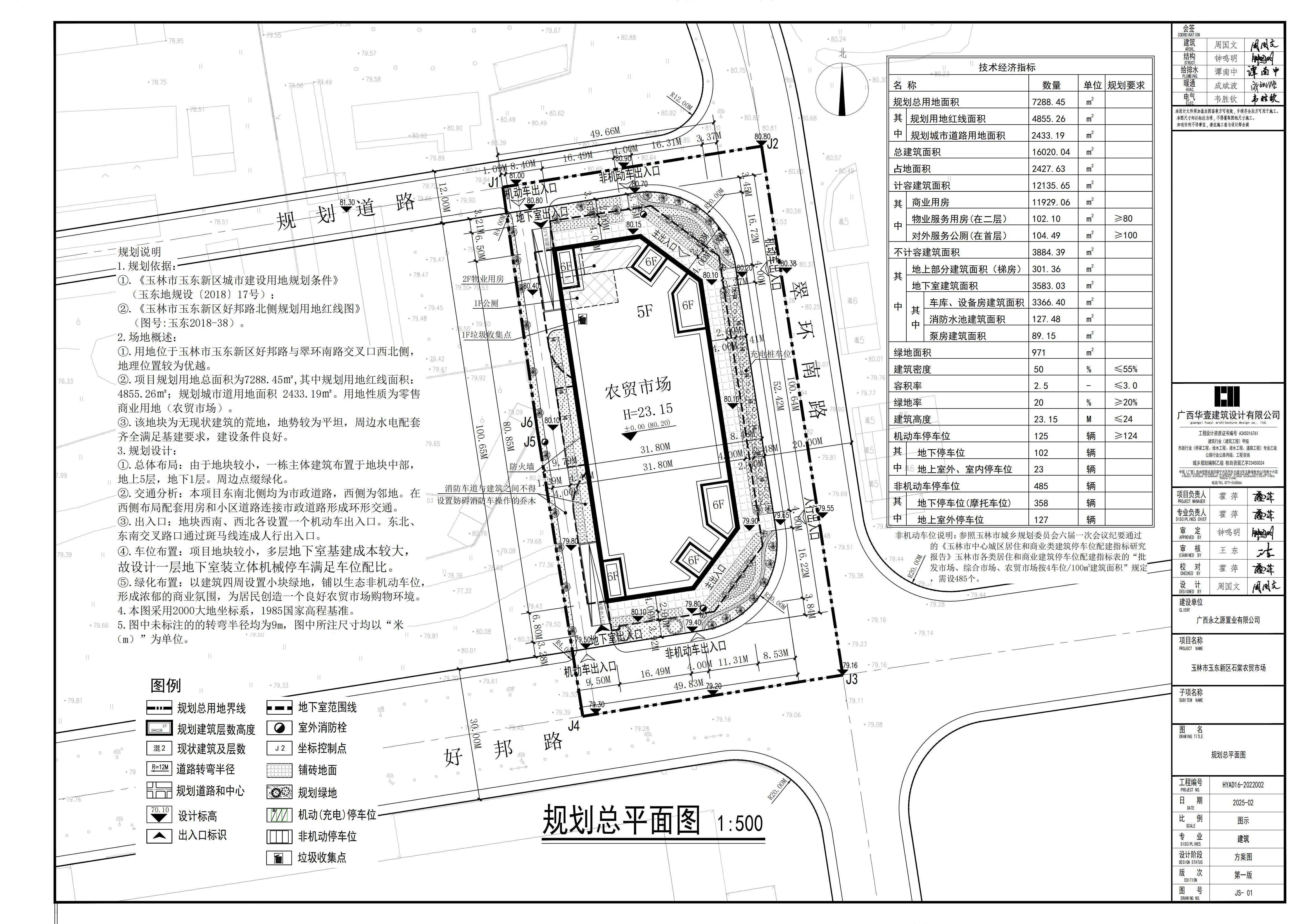 1.玉林市玉东新区石棠农贸市场总平面图(设计单位:广西华壹建筑设计有限公司;工程编号:HYAD16-2022002;日期:2025-02)