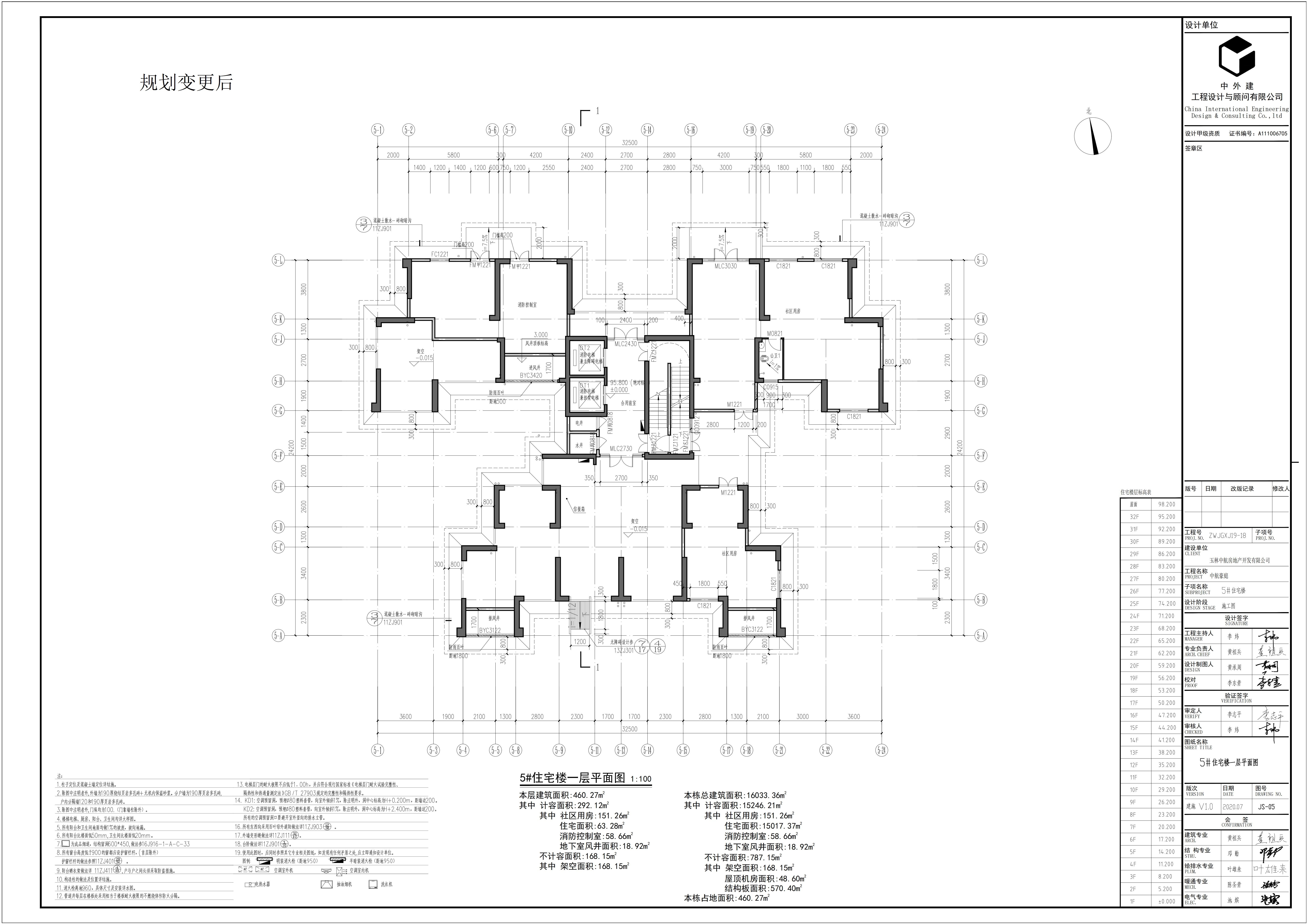 中航豪庭5#楼一层平面图(变更前后图)