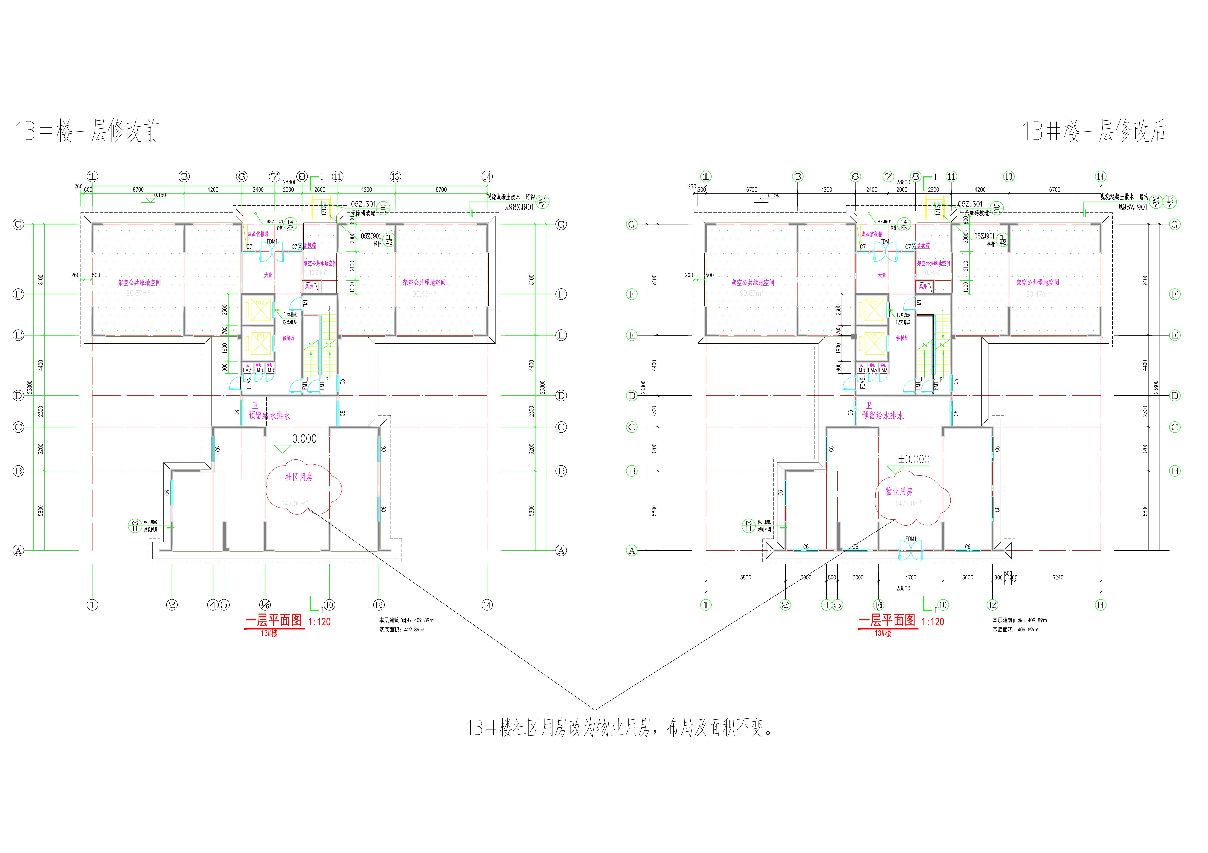 (二)13#一层平面图调整前后对比图