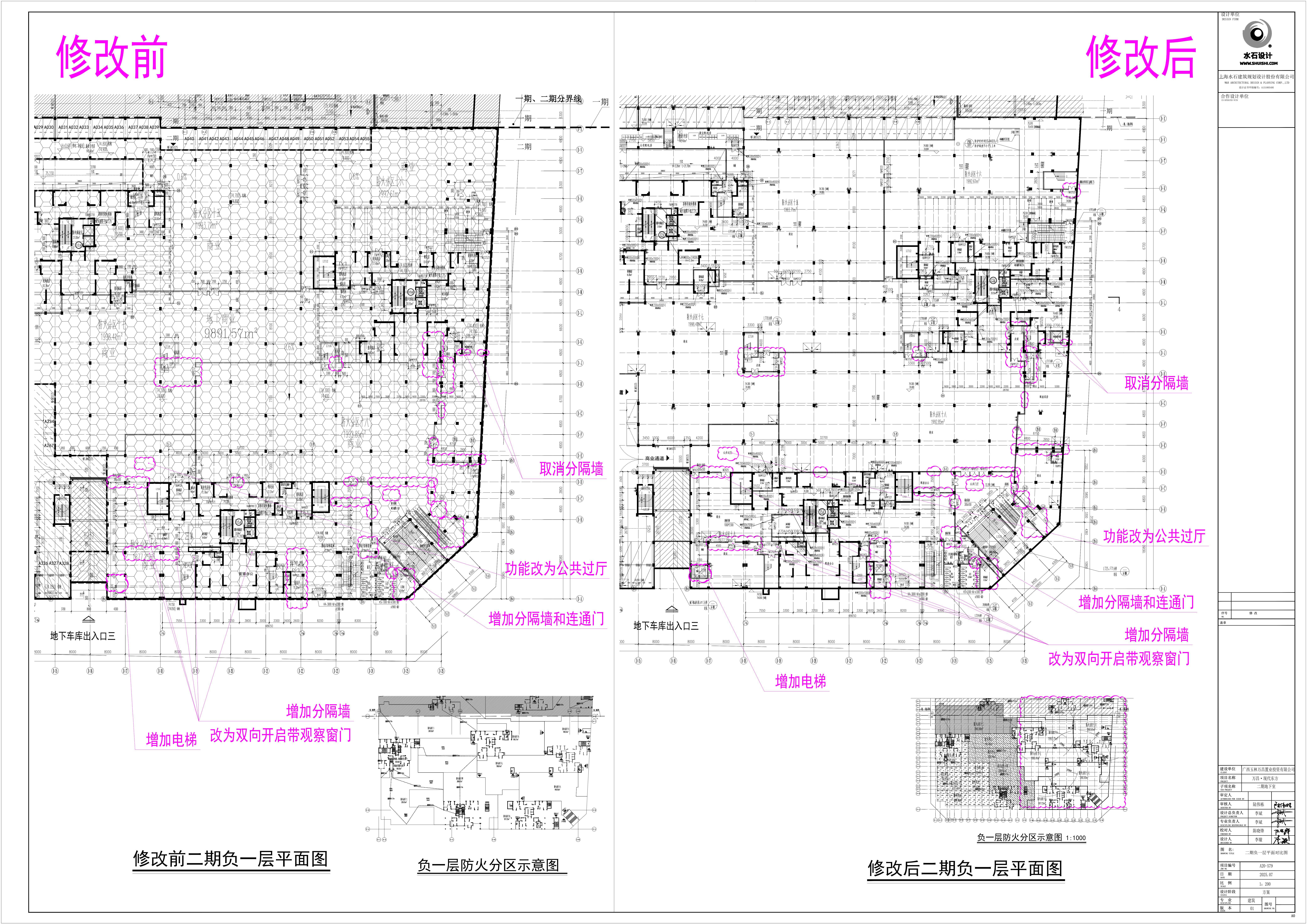 1.万昌·现代东方二期地下室负一层平面图调整前后对比图