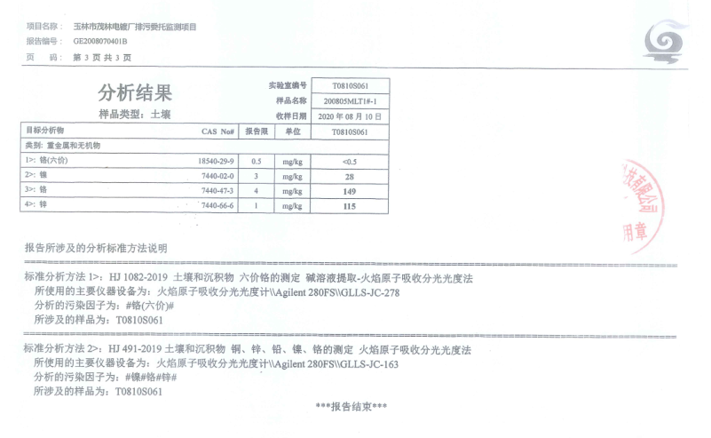 土壤玉林市茂林电镀厂自行委托监测报告