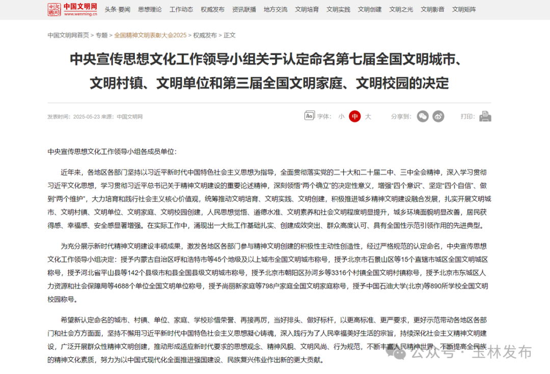 这是玉林高新区首个获授“全国文明校园”荣誉称号的学校