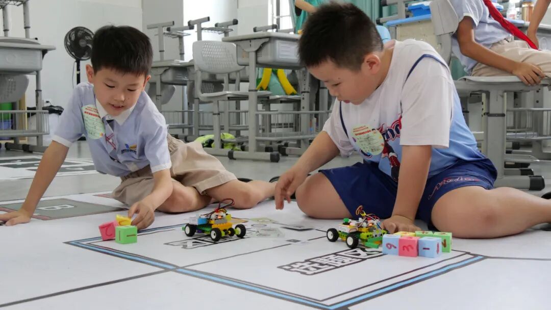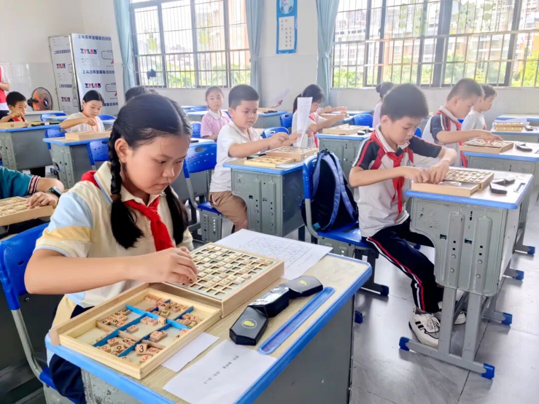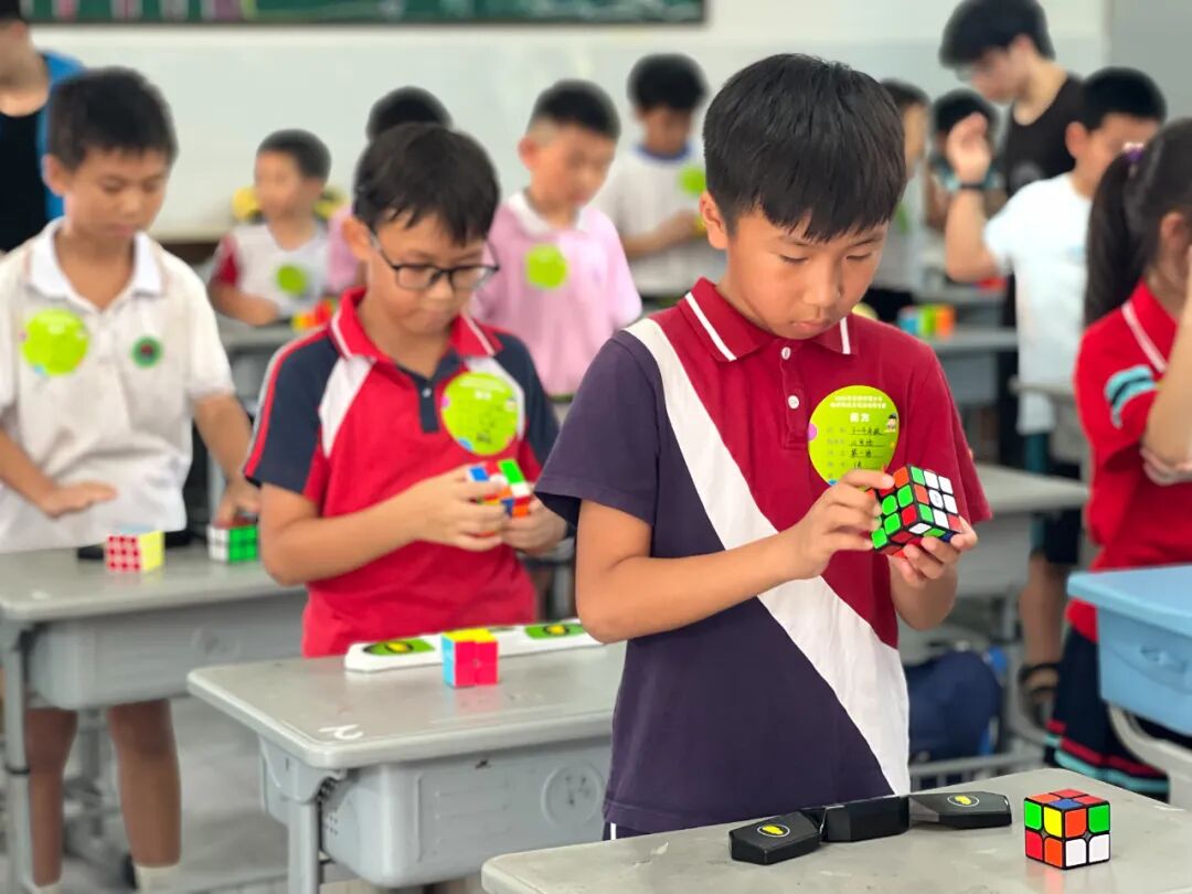 随着赛事正式拉开帷幕,1800多名选手迅速投入紧张而有序的比赛中,各赛区瞬间也化作激情与智慧碰撞的科技海洋。放眼望去,智力七巧板赛区的小选手们指尖翻飞间,五彩板块迅速组合成各种精巧图案;隔壁的魔方赛场气氛尤为热烈,"咔咔"的旋转声如疾风骤雨,选手们手指飞舞,杂乱色块以肉眼难及的速度归位;数学编程区则上演着无声的脑力角逐,少年们紧盯屏幕,键盘敲击声如密集鼓点,代码行间流淌着严谨逻辑。此外,其他项目赛场也同样引人入胜,整个玉东三小的校园,已然成为一个充满奇思妙想和探索精神的巨大实验室,生动地展现了新时代少年蓬勃的创新活力。