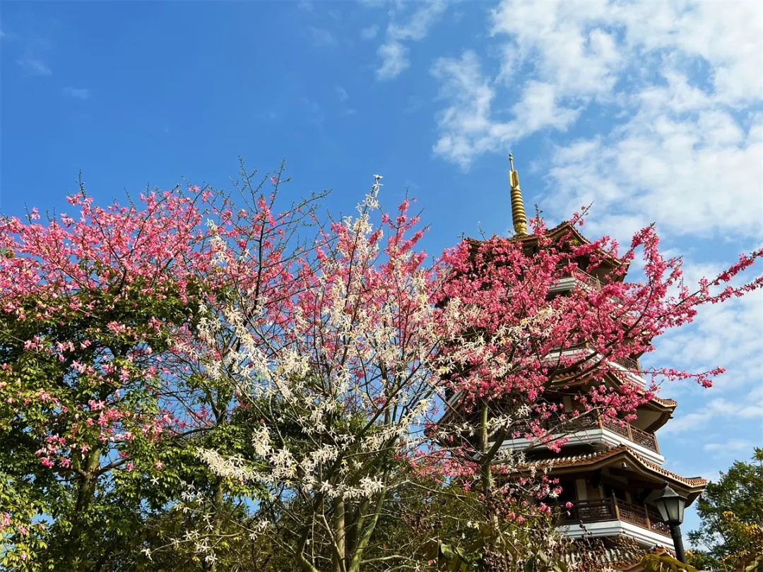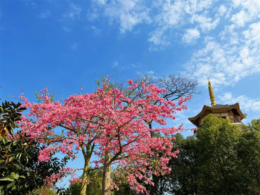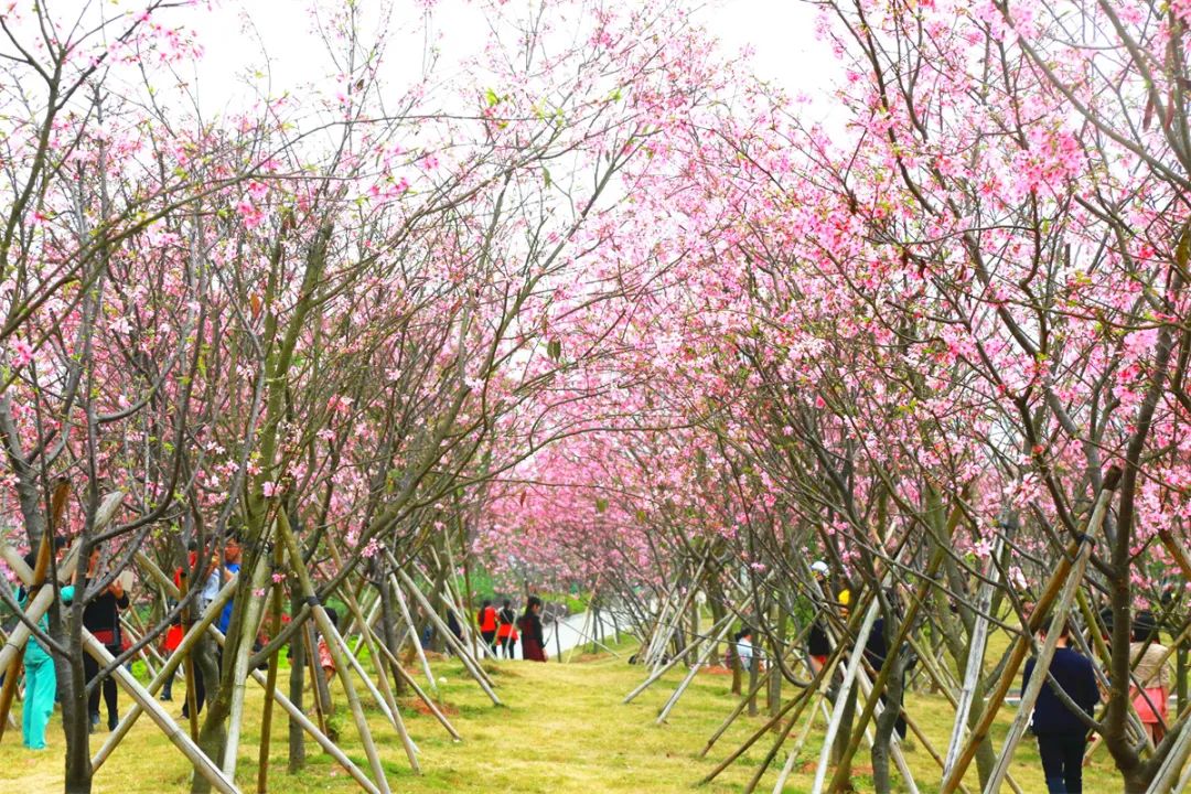 此时此刻,五彩田园樱花园景区内的樱花正值初绽时期,春意盎然,绯红色的花朵极其美丽,呈现出娇嫩的害羞姿态。随风扬起的花瓣,烂漫而美丽!