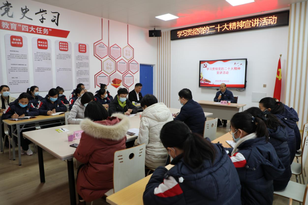 12月5日,玉东新区工委副书记、管委主任黄聪来到玉东新区第三小学、东投公司,开展党的二十大精神宣讲活动,把党的二十大精神带到学校和企业。强调要深刻领会、准确把握党的二十大报告中的重要思想、重要观点、重大战略、重大举措,把党的二十大精神落实到学校教学和企业生产经营各环节、各领域,让党的二十大作出的重大决策部署在玉东付诸行动、见之成效。
