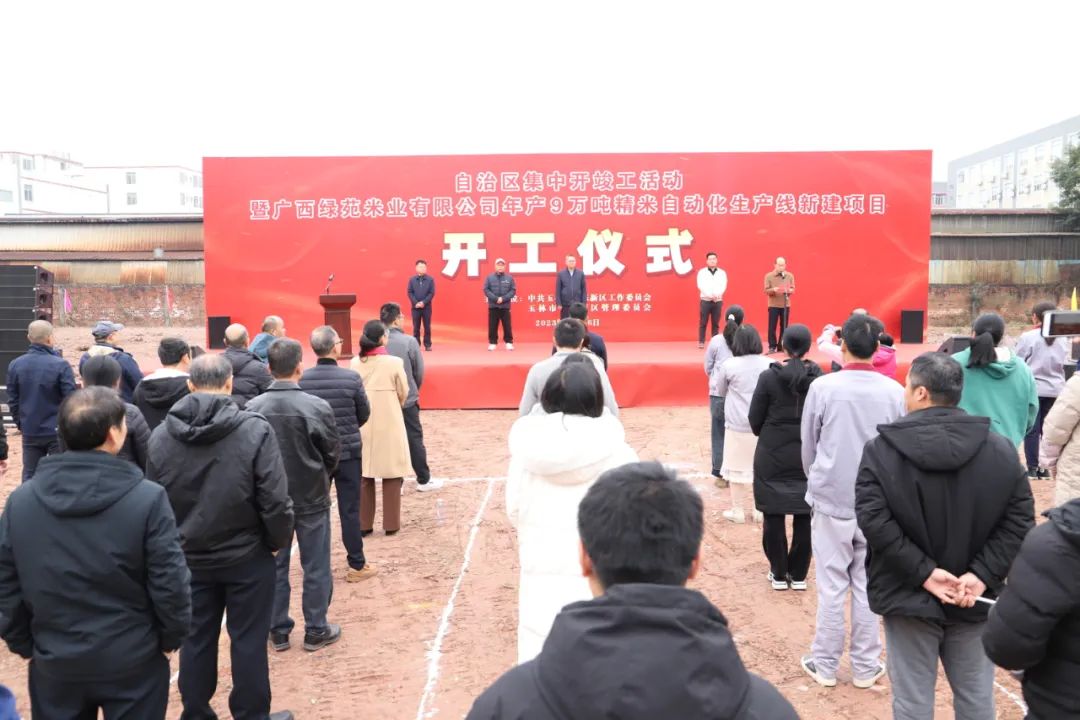12月26日,玉东新区举行自治区集中开竣工活动暨广西绿苑米业有限公司年产9万吨精米自动化生产线新建项目开工仪式。区工委管委领导姚春强、黄胜波出席开工仪式。