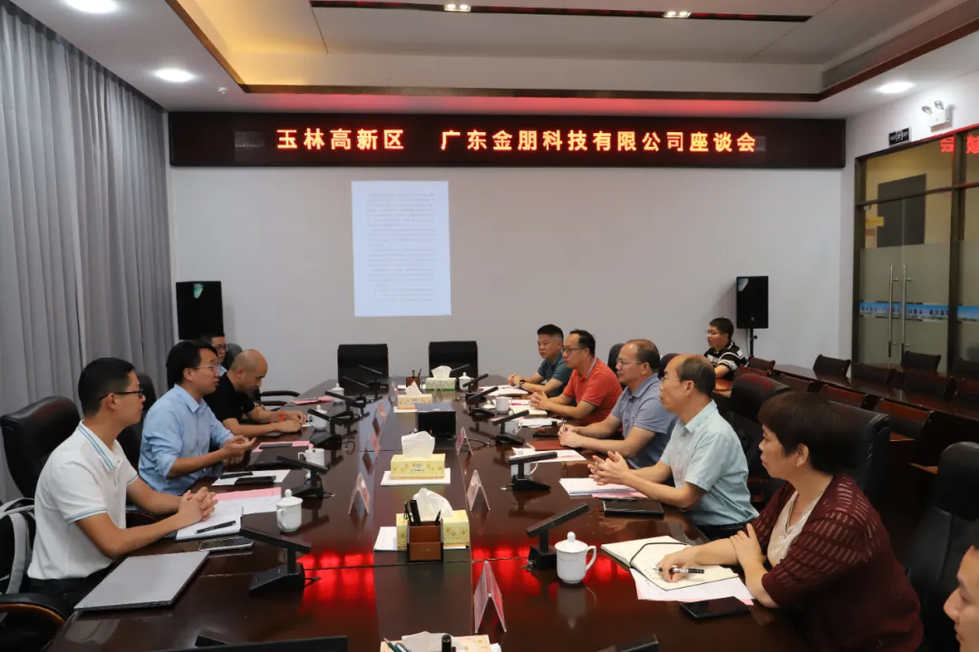 黄政强对李结林一行的到来表示欢迎,对广东金朋科技有限公司给予玉林高新区的关注表示感谢,并介绍了玉林高新区经济社会发展取得的成就以及产业规划布局、招商引资重点等情况。黄政强说,当前玉林高新区深入学习贯彻党的二十届三中全会精神,抢抓重大发展机遇,深入贯彻落实玉林市委、市政府各项决策部署,围绕打造玉林智谷核心区、产城融合新高地、文旅康养生态圈、医药健康产业园的一区多园、联动发展的目标定位,抢抓利用好政策,在PLC物联网、智慧城市、数字乡村以及智慧农业等领域为双方提供了广阔的合作空间。希望双方进一步加强对接,深化多领域合作,推动项目加速在玉林高新区落地见效。玉林高新区将落实好相关惠企政策,着力为企业提供优质的营商环境和强有力的服务保障,全力促成合作意向落地,确保双方实现合作共赢。李结林介绍了广东金朋科技有限公司的业务布局、发展战略目标等有关情况,就合作意向项目进行了介绍,认为玉林高新区产业基础良好、区位优势明显、要素资源富集、营商环境优越,十分看好玉林高新区未来发展。表示将进一步深化交流对接,充分发挥企业特长优势,扩大合作领域,尽快推动项目签约落地,推动双方合作取得更多成果,更好助力玉林高新区经济社会高质量发展,携手开创合作发展新局面。区管委副主任黄胜波主持会议,相关部门负责人参加座谈。