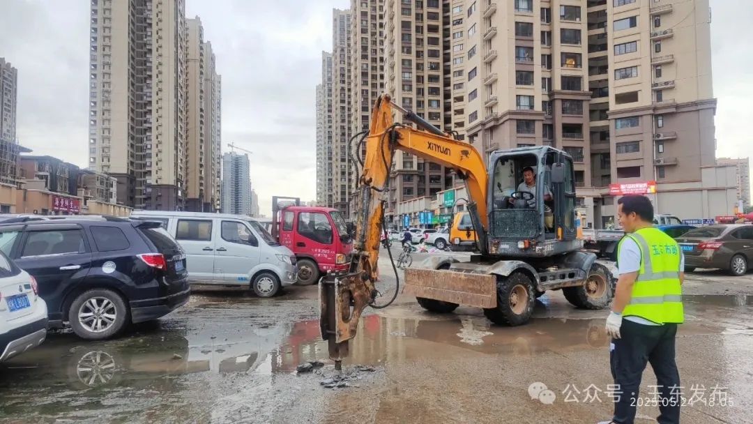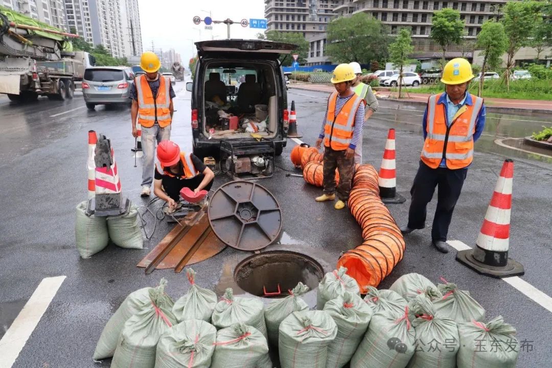 精准排查清源头,夯实防汛“基础桩”。玉林高新区坚持问题导向,组织专业力量对金玉路万达路口、教育东路广瑞检测站段等6处重点易涝区域开展"一点一策"精准排查,通过现场勘查、管道检测、历史数据分析等方式,全面掌握各点位积水成因、管网淤堵、设施老化等具体情况,通过采取清淤疏通、雨水导流、增设排水设施、完善管网改造等措施,确保排水通道畅通无阻,切实提升城区排水防涝能力。