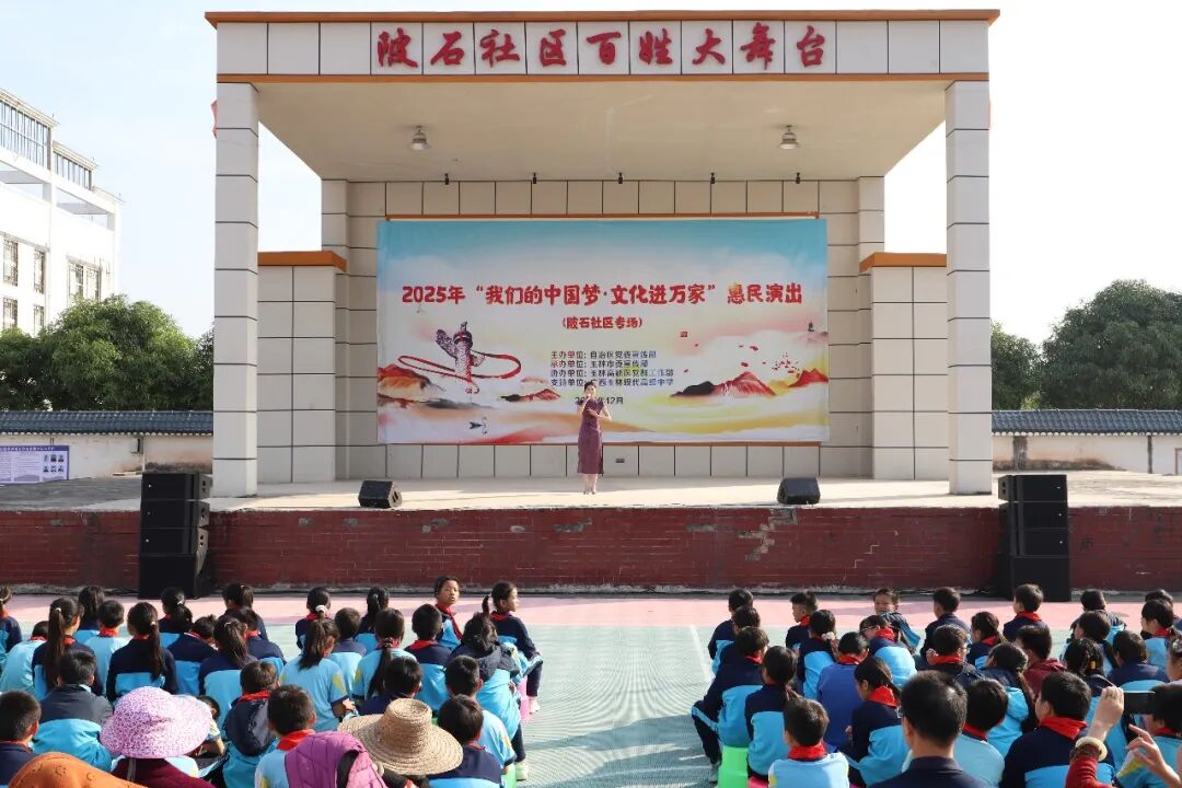 12月30日,由自治区党委宣传部主办、玉林市委宣传部承办、玉林高新区党群工作部协办、广西玉林现代高级中学支持的2025年“我们的中国梦——文化进万家”文化惠民演出在陂石社区精彩上演,为社区群众和师生送上了一场精彩纷呈的文化盛宴。