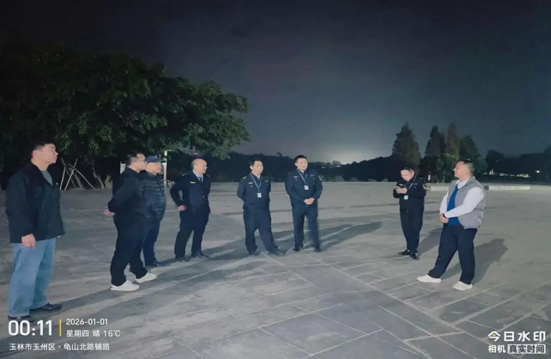 当晚,龟山、湿地、狮子山、挂榜山四大公园值班安保全员在岗、履职尽责,严格落实网格化管控与巡逻值守要求。截至2026年1月1日凌晨,四大公园及公园内经营户周边均未发生违规燃放事件,秩序井然,确保市民平安祥和跨年。