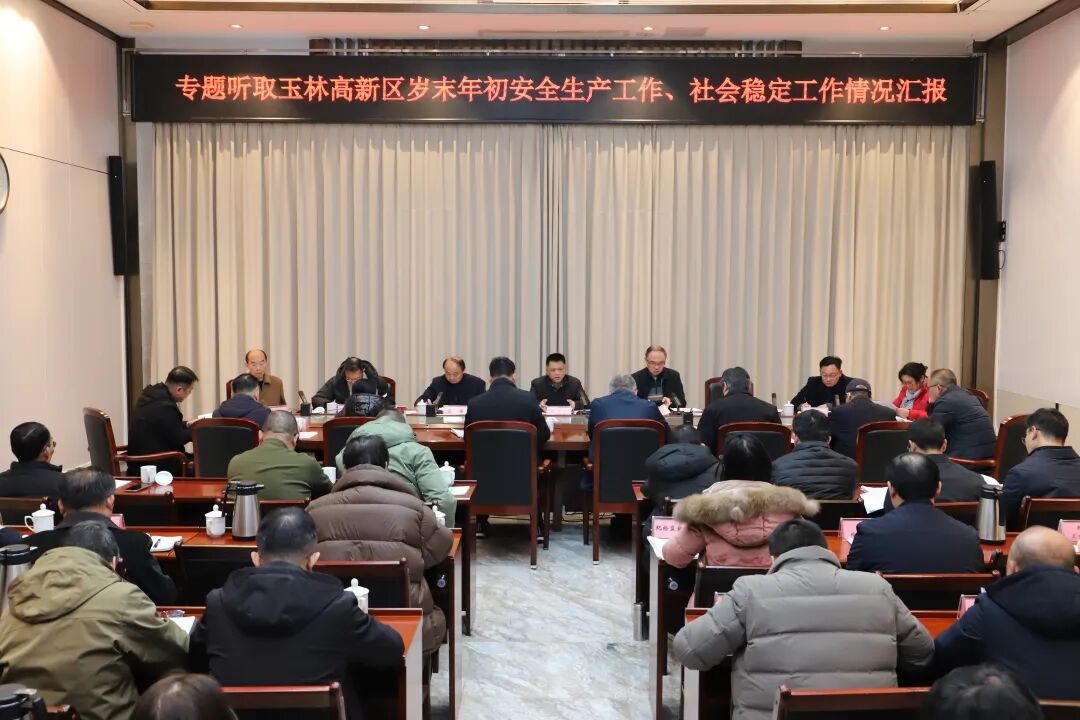 1月23日,玉林高新区召开专题会议,听取岁末年初安全生产、社会稳定等重点工作推进情况,深入学习贯彻习近平总书记关于安全生产的重要论述,对岁末年初安全稳定、社会治理等重点工作进行再研究、再部署、再推进、再落实,切实维护社会稳定大局,保障人民群众生命财产安全。区工委书记陈天宁主持会议并讲话,区工委副书记、管委主任陈情出席会议并讲话。