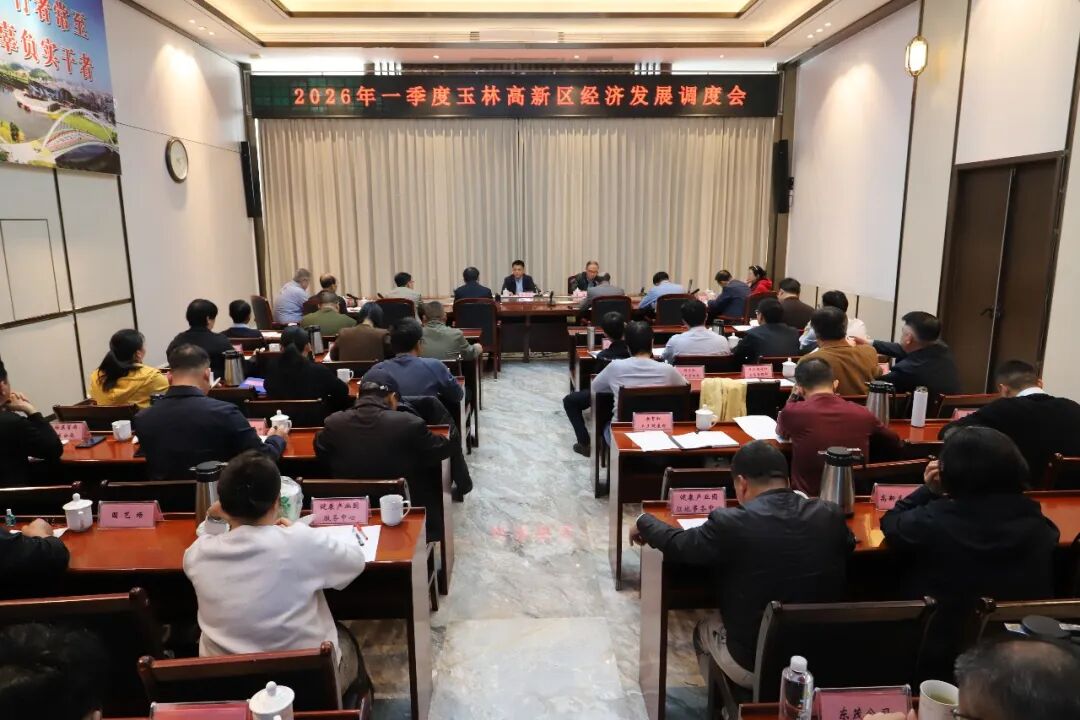 1月30日下午,玉林高新区召开2026年一季度经济发展调度会,深入学习贯彻习近平总书记在省部级主要领导干部学习贯彻党的二十届四中全会精神专题研讨班开班式上的重要讲话精神,贯彻落实2026年一季度全区经济发展调度会、2026年一季度玉林市经济发展调度会精神,坚持实干为要、创新为魂,用业绩说话、让人民评价,总结回顾2025年工作,分析当前形势,部署2026年一季度经济工作,动员高新区上下进一步统一思想、坚定信心、抢抓机遇、攻坚克难,奋力实现一季度经济高质量开局,为完成全年目标任务奠定坚实基础。区工委书记陈天宁出席会议并讲话,区工委副书记、管委主任陈情主持会议。