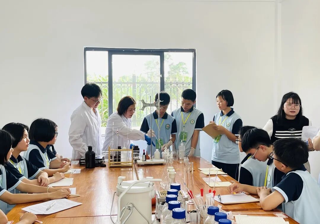 仪式结束后,生态环境监测中心的工作人员与我校师生开展现场教学互动活动。工作人员用通俗的语言、形象的比喻,详细地为师生们讲解了常用的污水处理方式,深入浅出地介绍了用于检测水质的实验器材与仪器设备,师生们切身感受到化学实验的真实性、趣味性、规范性。同时,在工作人员手把手地演示下,同学们顺利完成了水质取样、水的pH值检测等步骤操作,通过亲身体验来了解校园污水处理的步骤、了解身边的水质状况,进一步对生态环境保护工作有了新的认知。