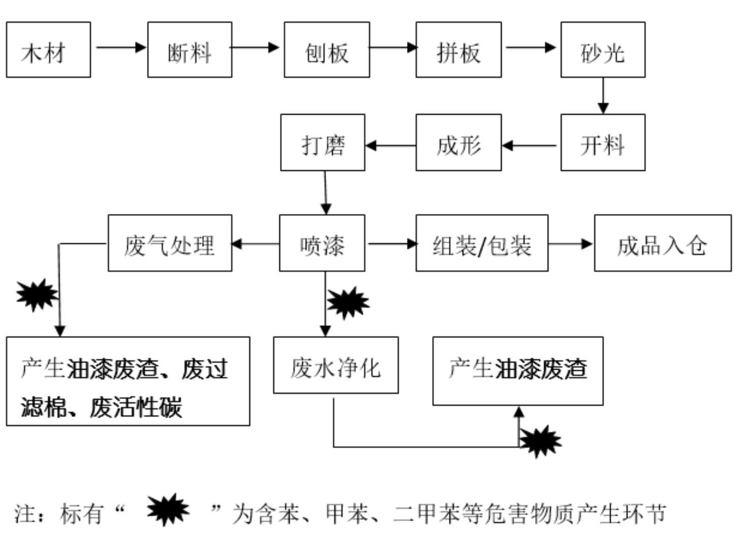 油漆废渣:油漆废渣是在废水净化系统和废气处理系统产生的固体危险废物。收集后暂时存放于专用危险废物房,存到一定量后,转移给有资质的单位处置,油漆废渣属于危险废物HW12类,代码900-252-12。 废过滤棉:在废气净化系统中用于过滤和吸附有害物质,当使用到一定时间后,因其过滤和吸附的作用已经失效,需要更换新的。报废的过滤棉暂时存放于专用房,存到一定量后,转移给有资质的单位处置,废过滤棉属于危险废物HW49类,代码900-041-49。 废活性炭:在废气处理系统中用于吸附有害物质,当使用到一定时间后,因其过滤和吸附的作用达到饱和状态,需要更换新的。报废的活性炭暂时存放于专用危废房,存到一定量后,转移给有资质的单位处置,废活性炭属于危险废物HW49类,代码900-039-49。 | ||||